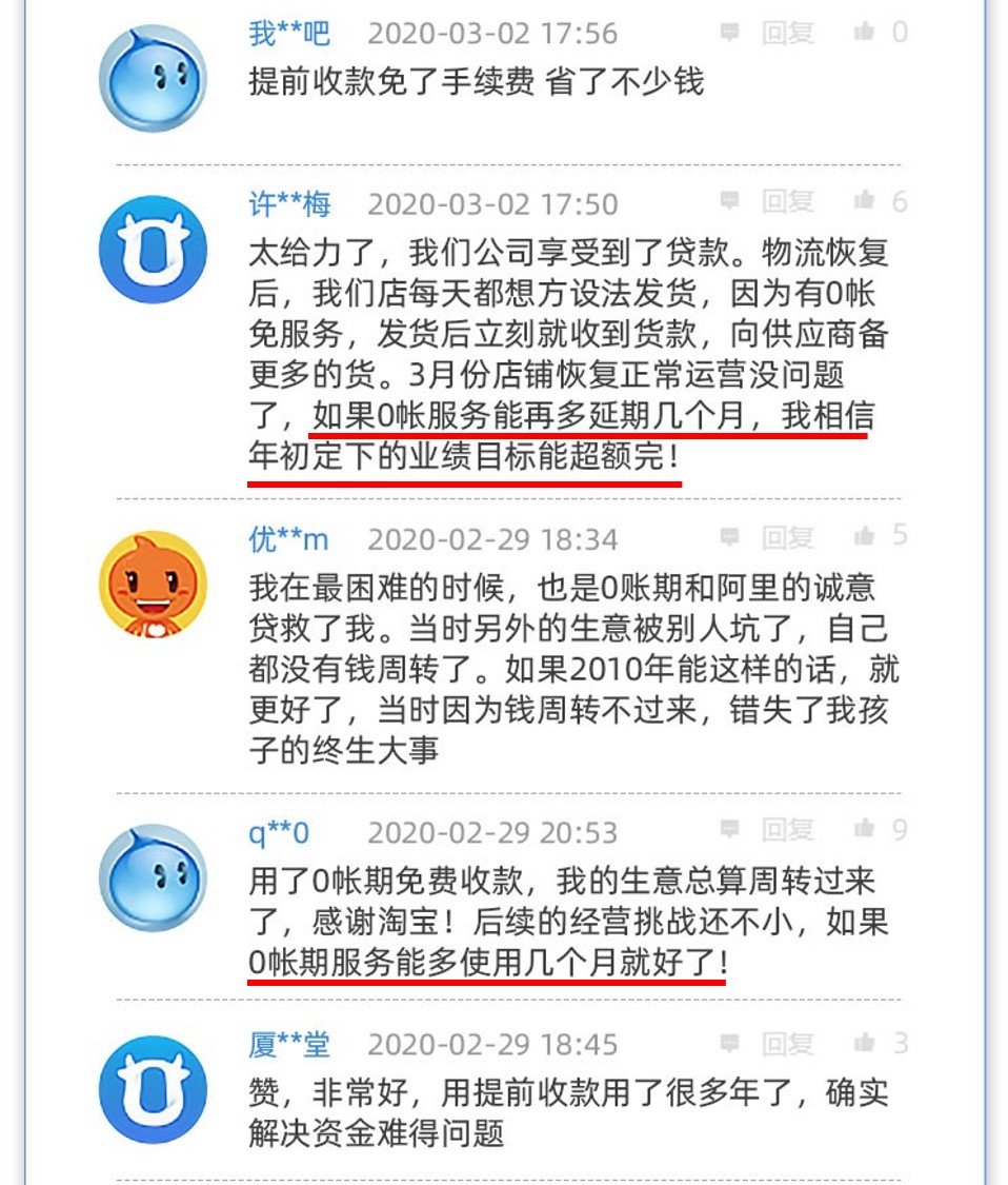 阿里巴巴20条商家扶植举措”,其中关于0账期的扶植政策解决了一些商家朋友们的资金流难题,此外,我们也看到了大家的呼声,很多商家朋友们都希望这一政策能够再免费一段时间。