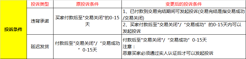 以下投诉发起条件这次不做调整,之后会针对部分用户开放