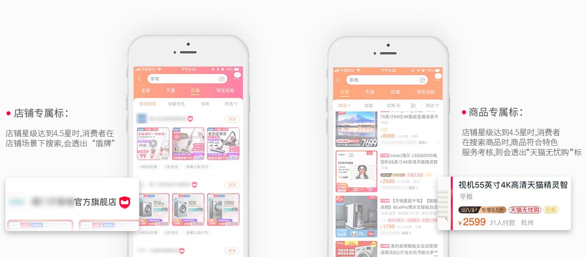 店铺星级以及商品天猫无忧购标展示在这里