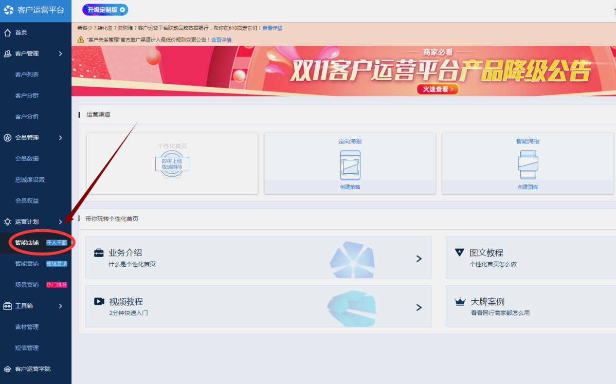 首先保证我们主营类目正确,其次你的千人千面有没有设置过,我们千人千面在哪里呢,在我们千牛卖家中心---营销中心--客户运营平台----运营计划---智能店铺,是我们的千人千面。